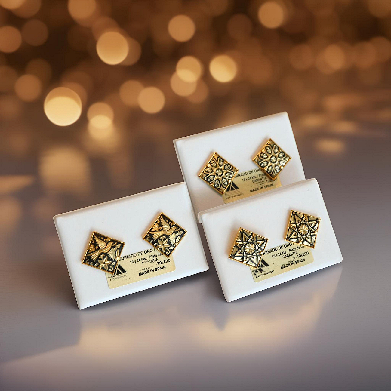 Adorn your ears in with these stylish post damascene earrings. Available in Renaissance (birds and flowers) or Arabesque (geometric) design, these earrings will add a special touch to your special outing.